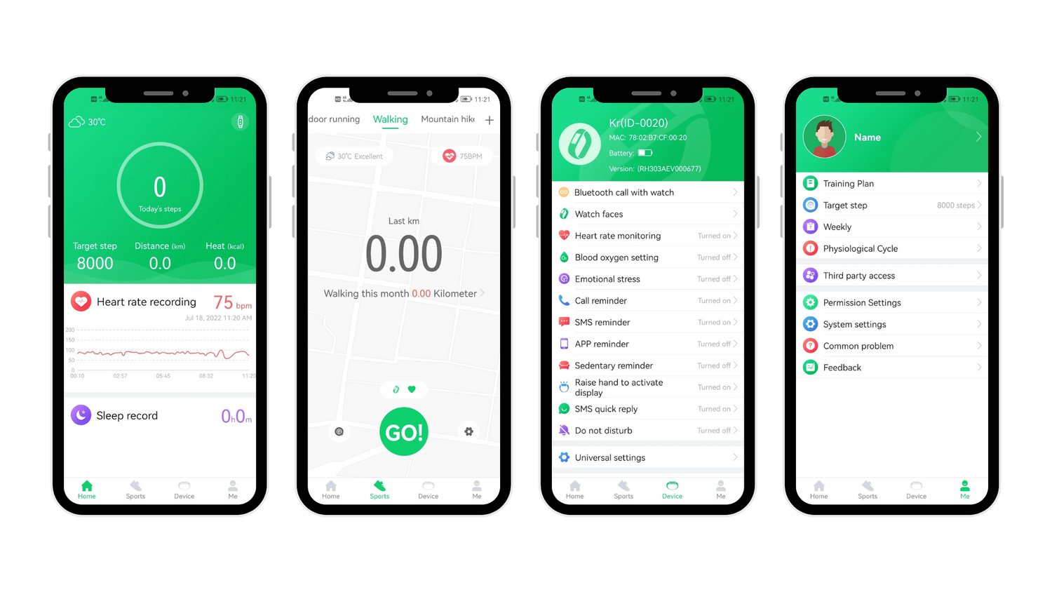 This app works with the smartwatch to record your exercise details, such as step counting, sleep, heart rate, etc. In addition, GloryFit also supports SMS reminder, call reminder, SMS quick reply, APP reminder and other functions.